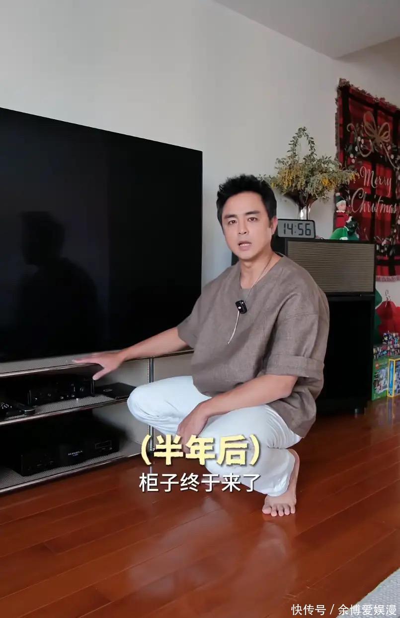他最近在视频里带大家逛新家,光着脚、穿棕上衣配白裤子,整个人放松得很。家里木质地板配猪肝色大门,复古味儿十足,有点像上世纪末的风格。他蹲在地上,一脸得意地介绍那个等了半年才到手的定制电视柜——钢架结构,冷冰冰的,乍一看像办公室用的临时家具。可就这么个柜子,花𱅀万块!网友直呼看不懂,说这钱花得冤。其实连他老婆当初都不同意买,后来他送了个白色香奈儿包——还是昆凌同款——才“换”来老婆点头。翻包时他直接坐地上,名牌包随手一扔,估计他太太看了得皱眉。 家里有个角落专门搞节日仪式感:一面空墙,换块的毯子,再摆点小装饰,节日氛围就有了。他说没花多少钱,几百块搞定。这话听着轻松,可对打工人来说,下班累成狗,哪还有力气折腾这些?